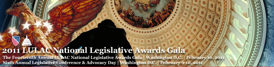 The League of United Latin American Citizens and its Corporate Alliance cordially invite you to attend The Fourteenth Annual LULAC National Legislative Awards Gala and Sixth Annual Legislative Conference & Advocacy Day Celebrating Legislative Service to the Hispanic Community and LULAC’s 82nd Anniversary February 9-10, 2011
